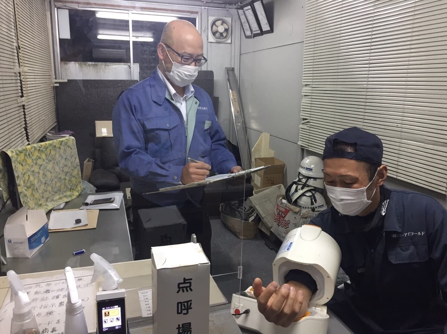 当社では、年2回の健康診断を実施し、乗務前後の点呼時においてもアルコールチェック以外に血圧・体温を計り万全な状態で運行出来る様、常に健康状態を管理しております。