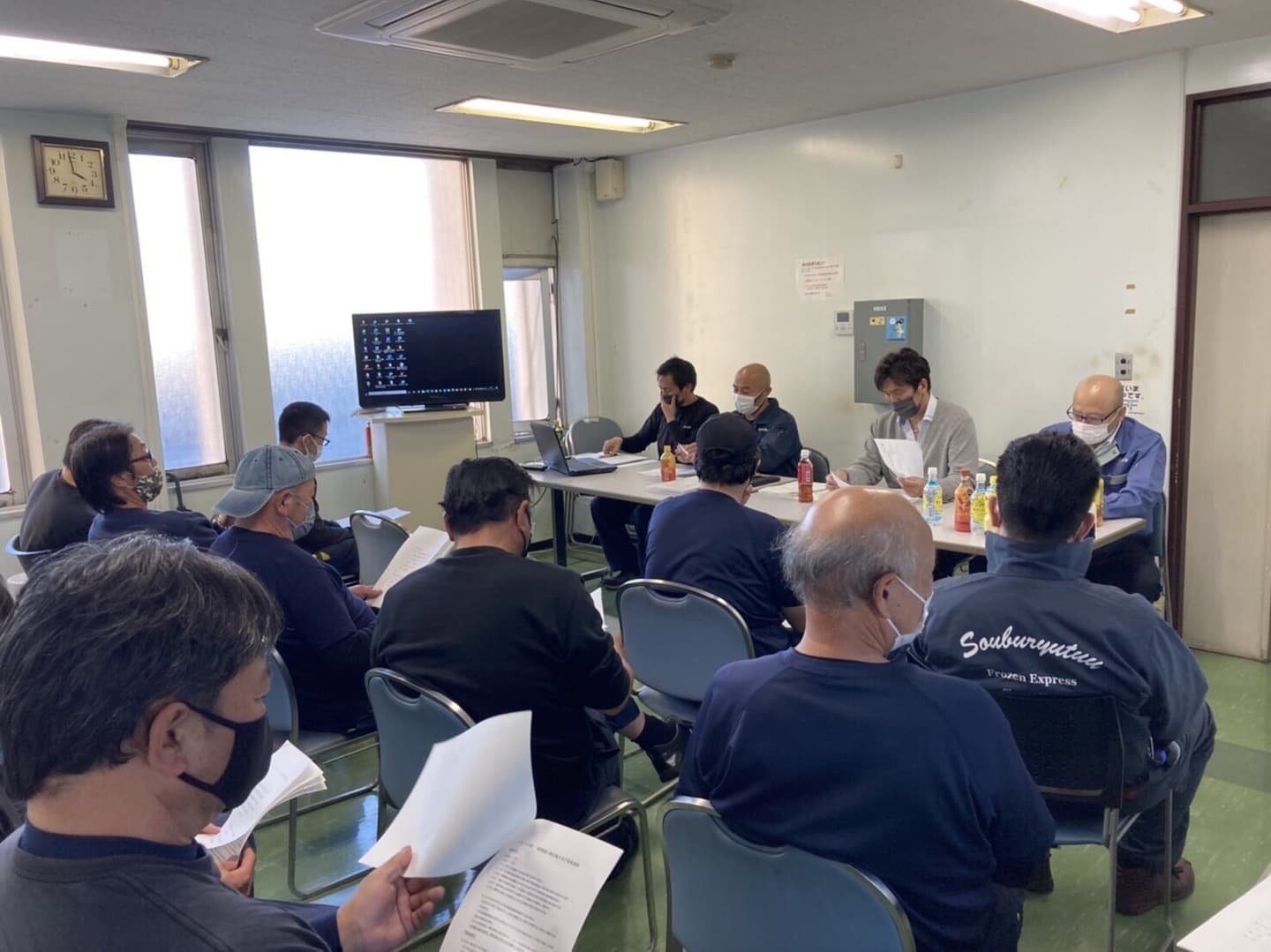 当社では、定期的にトラック協会等による安全運転講習を受け、毎月一度のドライバー定例会議を行い、ヒヤリハット報告やドライブレコーダーを用いて安全へのスキルアップを目指し、安全輸送に努めています。